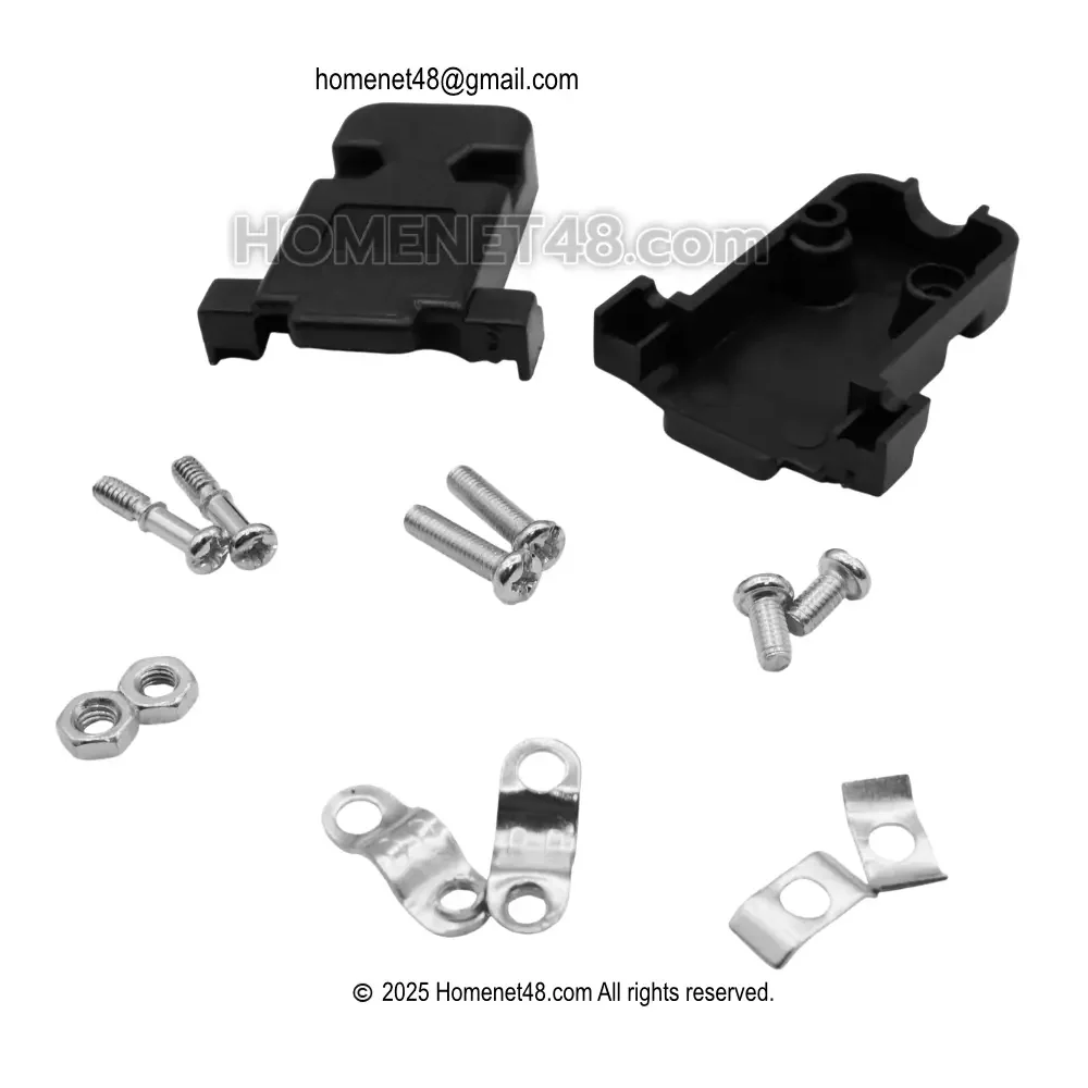 อะไหล่สำหรับประกอบหัว VGA (RGB) และ Serial (RS232 DB9) เฉพาะตัวกล่องหุ้ม และน๊อตครบชุด ใช้ซ่อมแซม DIY เหมาะสำหรับช่างผู้ชำนาญที่สามารถเข้าหัวสายได้เอง